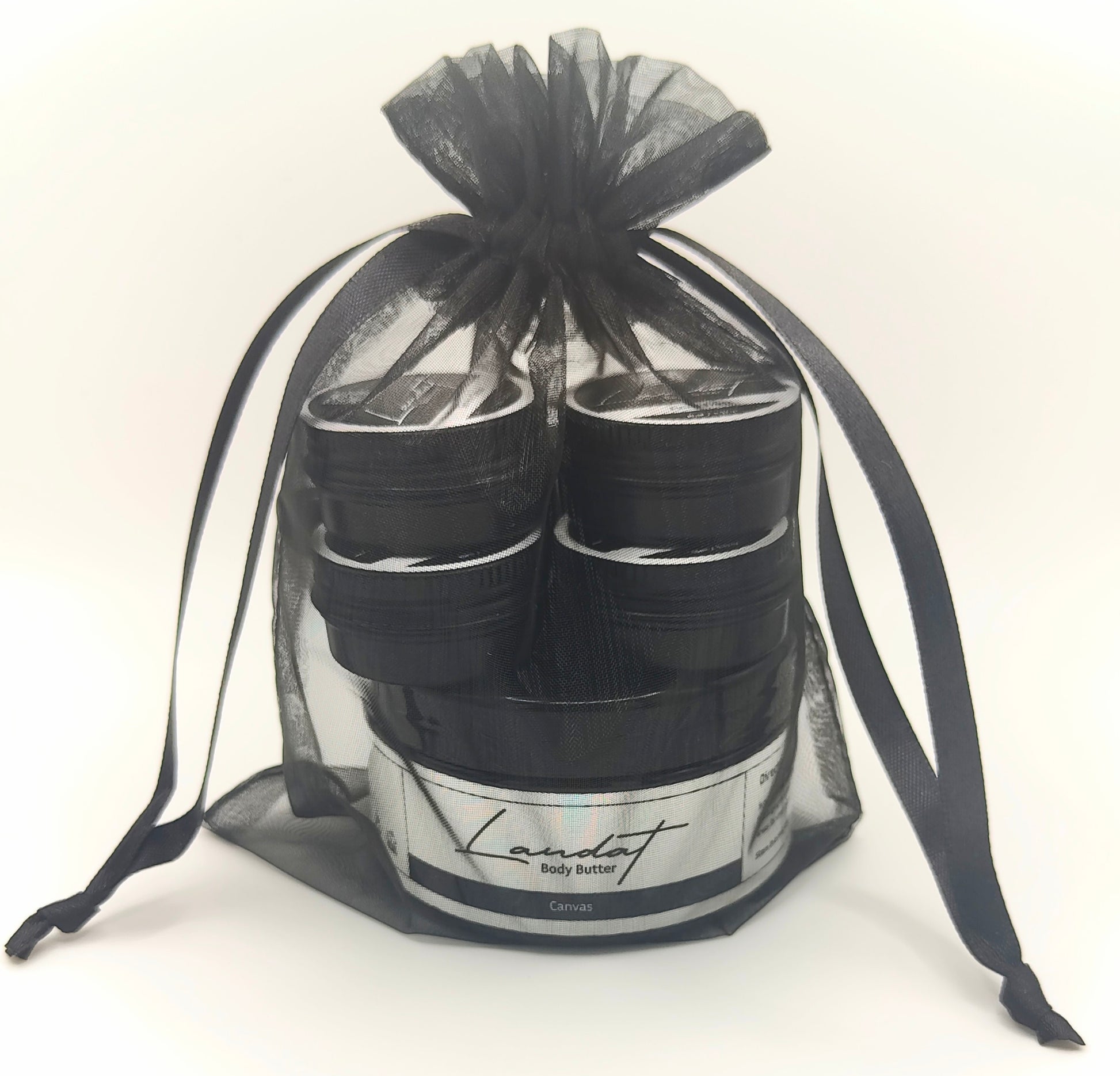 Scented Body Butter Samplers (4 x 10ml Tins): One sample tin of each of our signature scents: Serene Citrus, Nocturne Blend, Floral Frost, and Coastal Glow.